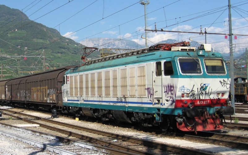 落書きだらけの貨物機関車E.633型。