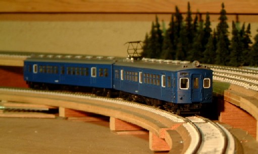 | TMS鉄道模型コンペ2002で入賞された村松努さんの51系に感動を覚えながら、出来は及びもしませんが、新幹線ブルー一色の福塩線電車が、やっと我が物になりました。 |