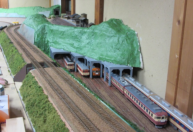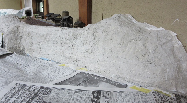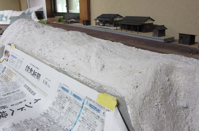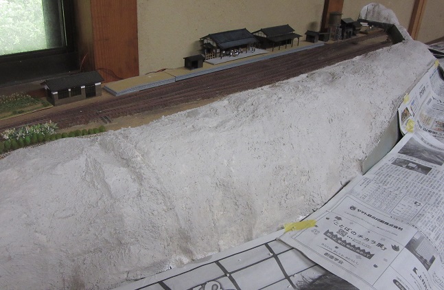 プラスターの材料は、TOMIXの8141シーナリープラスターや白色カベ・穴埋め補修材です。何れも10年以上も昔に買って、そのままになっていた材料です。 |