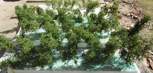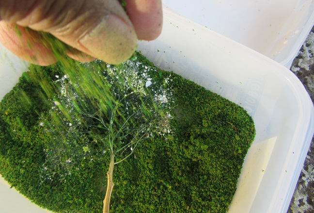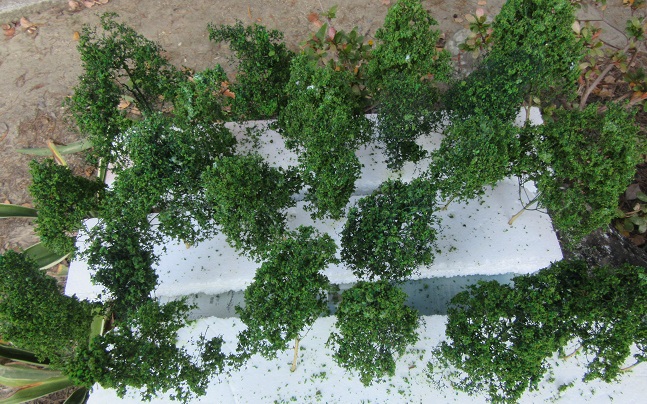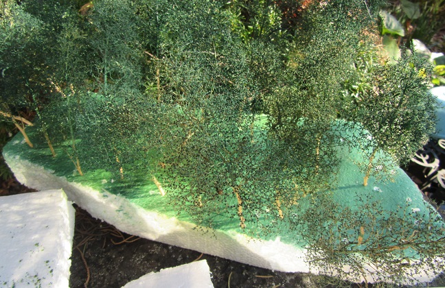 (2025.11.23) こちらもスポンジ製の低木を貼り付けていきます。 |