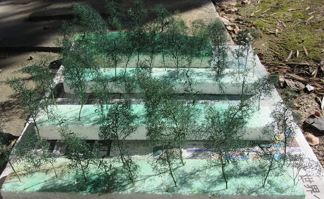 (2025.11.8) いよいよ植林作業です。 先日むしり取ったスポンジを撒き、どこでどう手に入れたかは忘れましたが、ドイツかどこかヨーロッパの国の木々達、画像右上部分です。 |